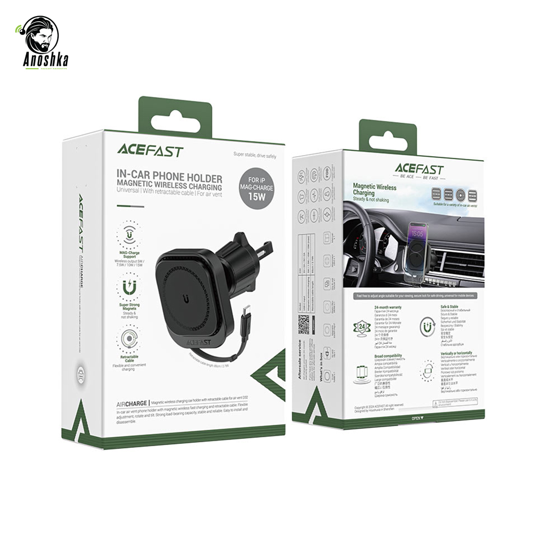 The ACEFAST D32 Magnetic In-Car Phone Holder redefines convenience on the road with its powerful magnetic grip and built-in 15W fast wireless charging. Designed for modern drivers, it securely holds your MagSafe-compatible smartphone while delivering efficient, cable-free charging—keeping your device powered and accessible throughout every journey.