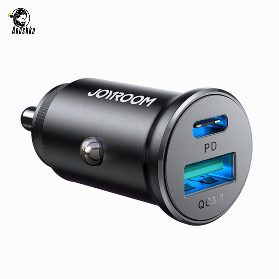 The JOYROOM JR-CCN05 30W Car Charger offers fast and safe charging for two devices at once via USB-A and Type-C ports, with a durable metal design.