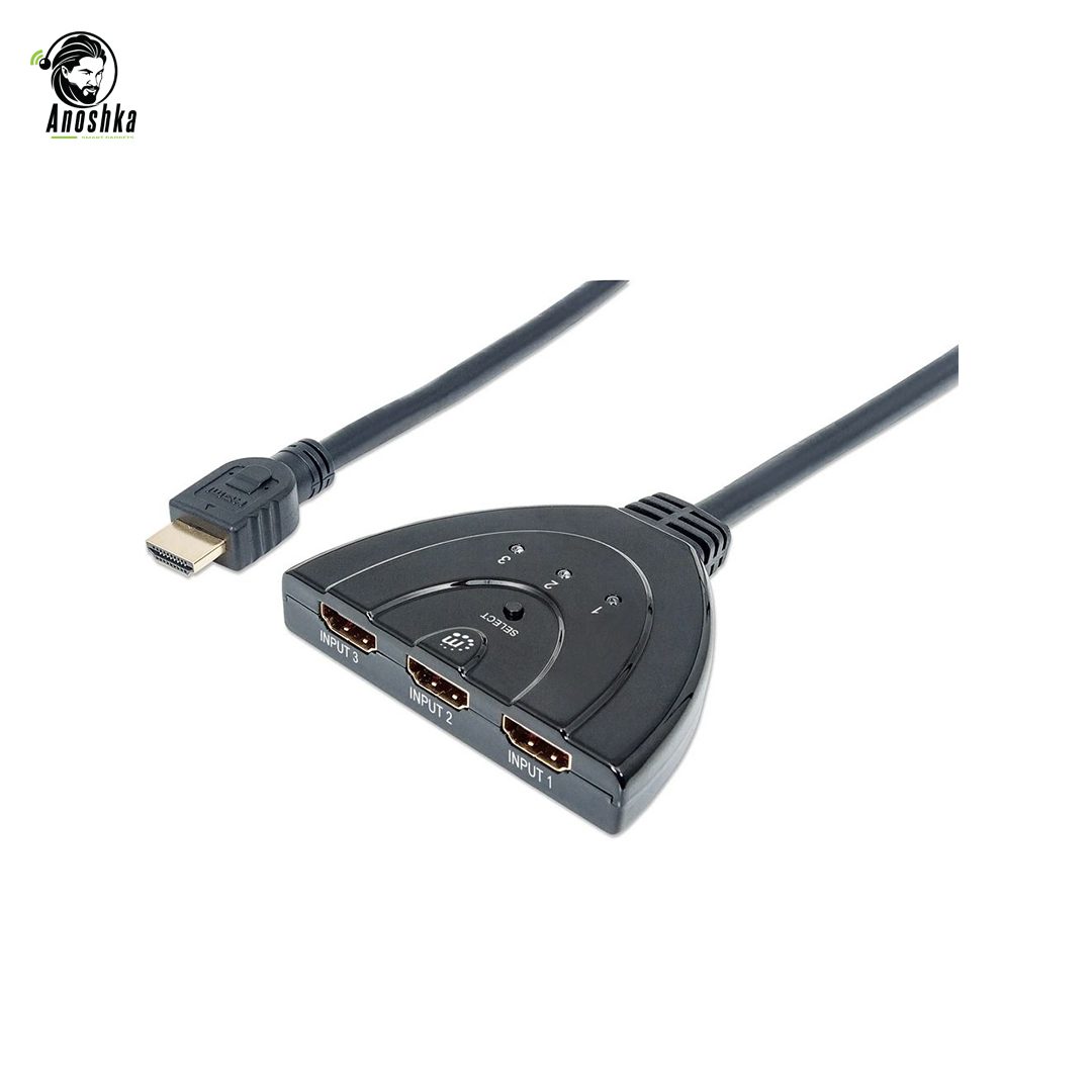 The Manhattan 207843 3-Port HDMI Switch allows you to easily connect multiple HDMI devices to a single display. Designed for convenience, it lets you switch between up to three HDMI sources such as gaming consoles, streaming devices, laptops, or Blu-ray players without constantly plugging and unplugging cables. Supporting Full HD 1080p resolution, this switch ensures clear and high-quality video output. Its compact design and integrated HDMI cable make installation quick and clutter-free, making it perfect for home entertainment setups, offices, or gaming environments.