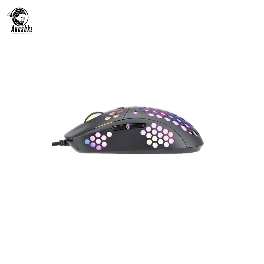 The Marvo M399 Gaming Mouse is designed for gamers who demand speed, precision, and comfort. Featuring an ultra-lightweight 76g honeycomb shell design, this mouse reduces hand fatigue and allows faster movements during intense gaming sessions. Equipped with a high-precision optical sensor with up to 6400 DPI, the M399 ensures smooth tracking and accurate control. Its ergonomic design and durable switches make it perfect for long gaming sessions, while the stylish honeycomb structure enhances airflow and aesthetics.