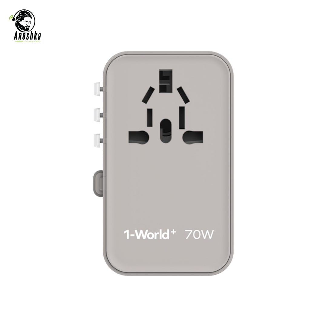 With its sleek and durable build, the 1-World 3-Port Travel GaN Charger 70W is compact enough for any travel bag, combining elegance with practicality.