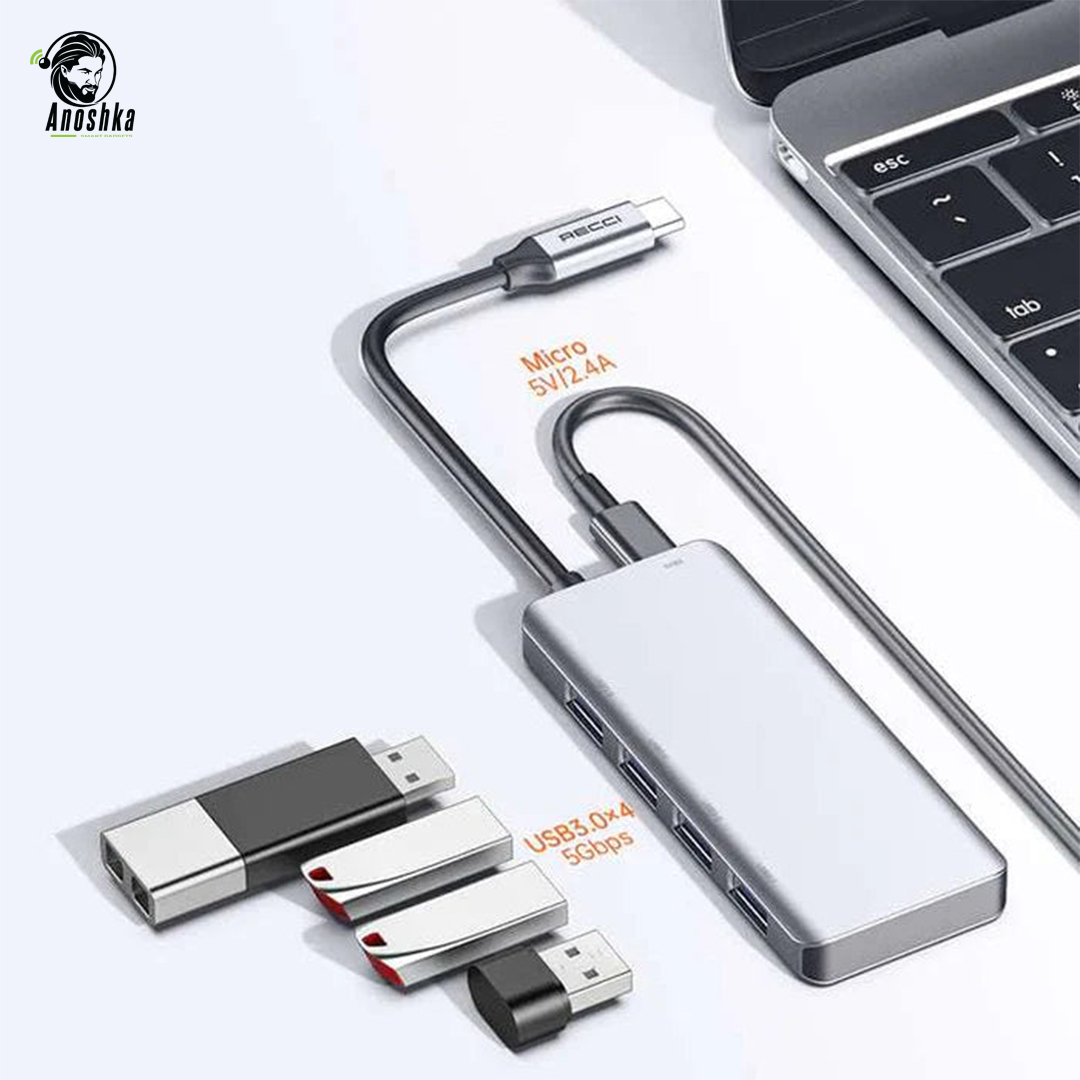 RECCI 5-in-1 Hub RH06 – Expand Your Connectivity with Speed & Style
