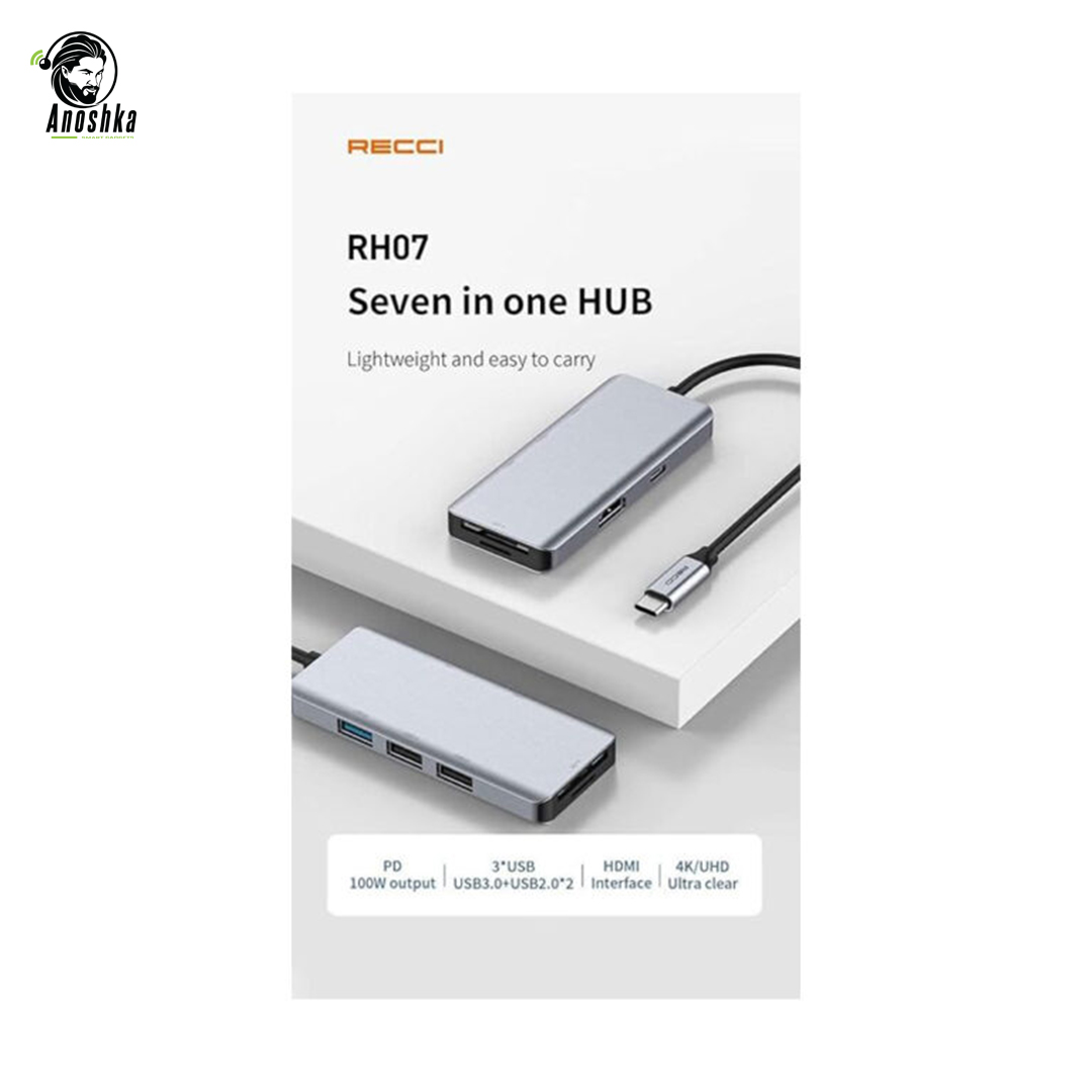 RECCI 7-in-1 Hub RH07 – Ultimate High-Speed Connectivity Hub