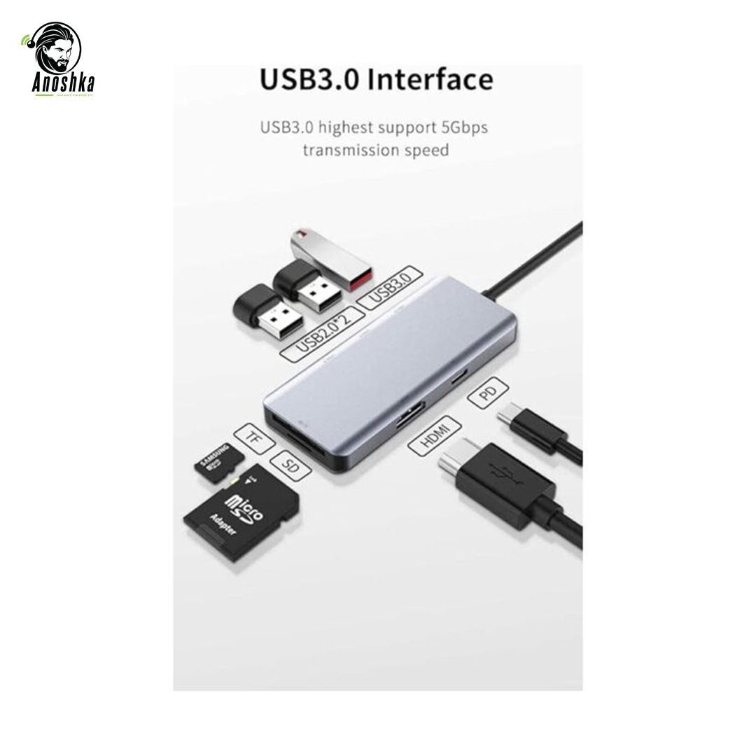 The RECCI RH07 delivers seven essential ports for all your needs: 1 HDMI 4K output, 3 USB 3.0 ports, 1 USB-C Power Delivery (PD) port, and dual SD/TF card readers. From streaming high-definition content to transferring large files, this hub handles every task effortlessly.