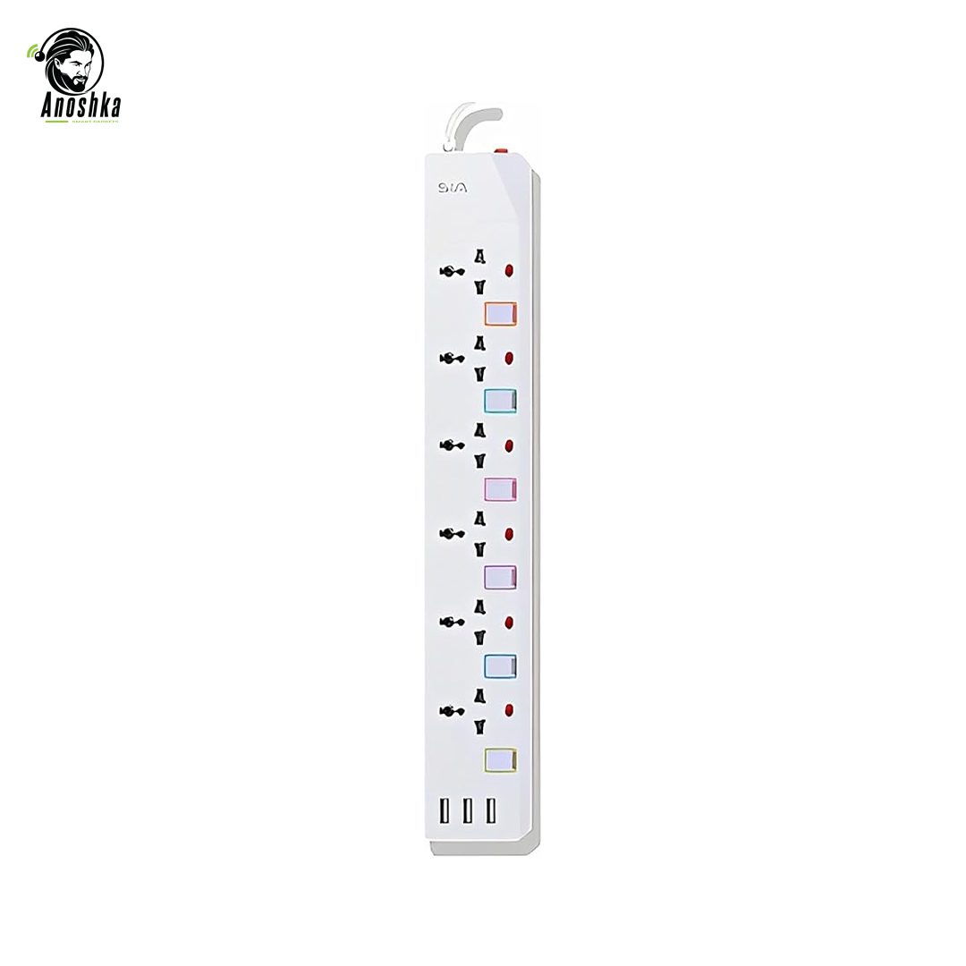 SIA SI-PS003W GEN1 Power Strip with 3 USB-A & 6 Power Sockets – 2500W – White