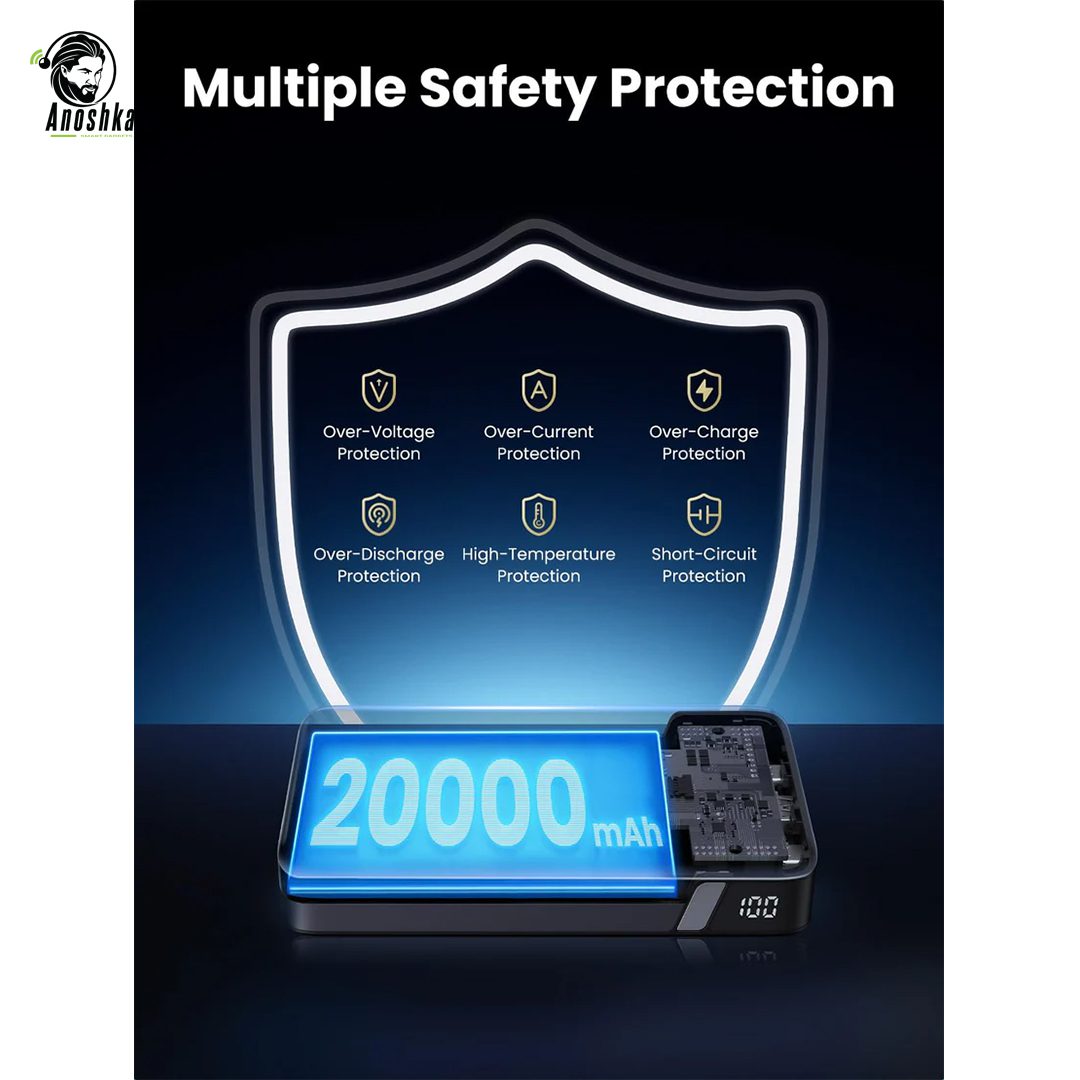 Featuring advanced Power Delivery (PD) technology, this power bank ensures ultra-fast charging and intelligent power distribution across multiple ports. Its sleek and portable design makes it ideal for travel, work, and everyday use. Built-in safety features protect against overcharging, overheating, and short circuits, providing safe and stable performance.
