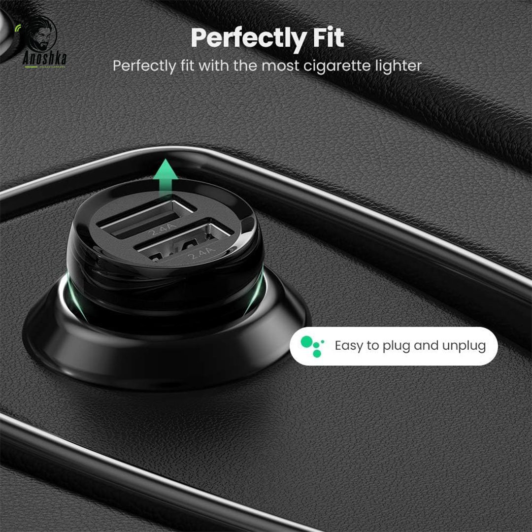 24W dual USB car charger for fast and safe charging of two devices simultaneously while driving.
