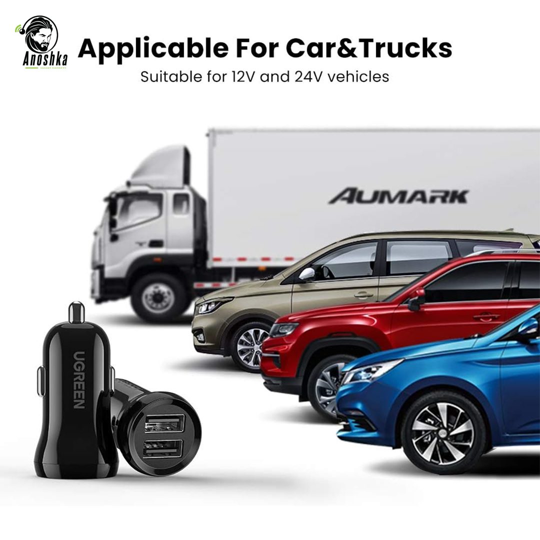 UGREEN Dual USB Car Charger 24W – Fast Charging – Black